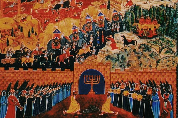 Tapınak Helen İmparatorluğu tarafından yağmalanmış, pagan ritüelleriyle acımasızca kirletilmiş, evrene sonsuz ışık saçan Menora’nın kandil yağları tükenmiştir.